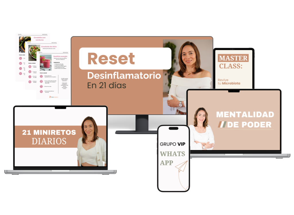 RETO desinflamatorio 21 días - Plan completo con videos, descargables, recetario y menú.